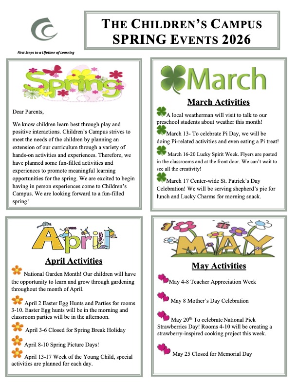 Contact Us To Schedule A Tour Call: (252) 756-8200Click here for a downloadable version of the Spring 2026 newsletter.